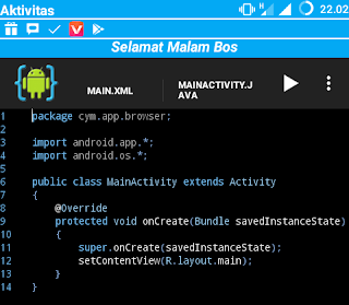 Hallo semua, diartikel kali ini kita akan membahas tentang membuat aplikasi browser android sederhana dengan AIDE.AIDE merupakan aplikasi android yang berfungsi sebagai: pembuat aplikasi android, pembelajaran membuat aplikasi android, pembuat game android sederhana, memberikan pembelajaran tentang beberapa bahasa program, dan lain sebagainya.Untuk mendapatkan aplikasinya anda dapat mengunduhnya di Google Play Strore (berbayar) atau cari digoogle dengan kata kunci "download aplikasi Aide mod full version".