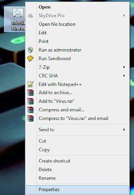 Lalu kita ubah iconya " Klick kanan pada shortcut yang kita buat tadi - Properties - Change Icon "