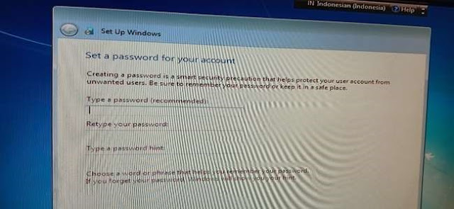 23. Kemudian saat reboot, jangan klik tombol keyboard apapun agar tidak looping dalam proses install. Lalu akan muncul tampilan setup windows untuk memasukkan nama user dan nama computer, isi sesuai yang diinginkan lalu klik next.