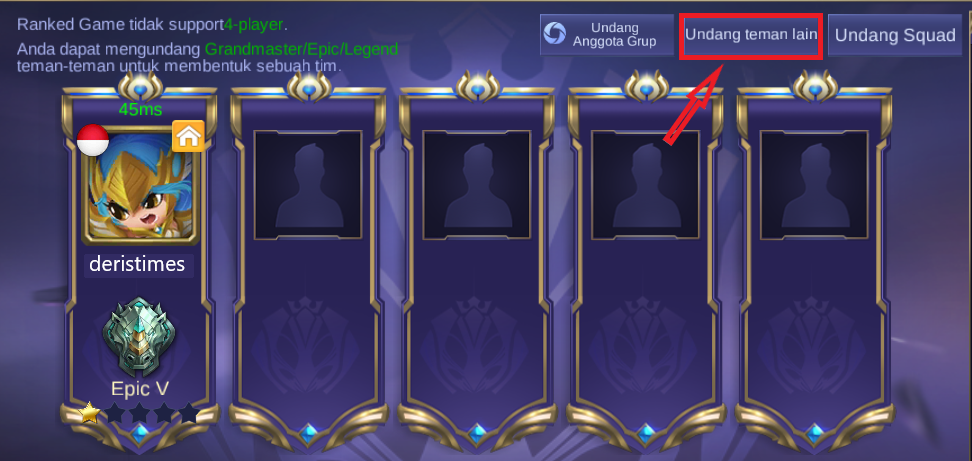 deristimes,Jakarta-Permainan Mobile Legend memang sudah pasti dilakukan oleh 5 anggota dalam satu tim melawan 5 anggota tim lain kecuali dalam mode VSAI.Anda selalu kalah bermain solo,dan ingin bermain dengan teman lain untuk bermain bersama yaitu cukup dengan mengundangnya.Cara mengundang teman memiliki 3 cara,yaitu :